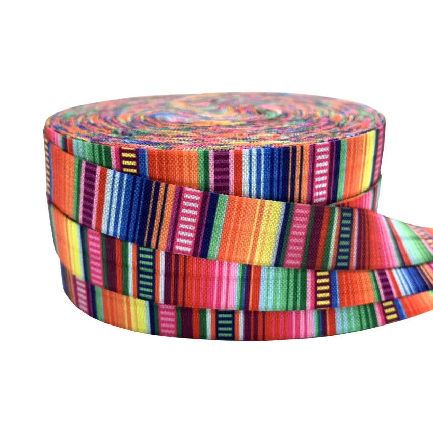 50 ярдов 5/8 "15 мм ширина ацтекская полоса аутизм печать складки над эластичной лентой тесьма тканевая повязка на голову повязка для волос аксессуары оптом