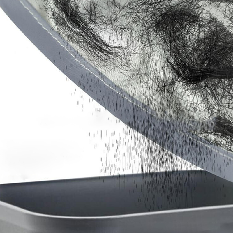 Creative design: a 70 cm wide, umbrella-shaped cape catches the annoying hair waste that falls into your neck, clothes and onto the floor. No more itchy, irritated skin; no more sweeping or vacuuming