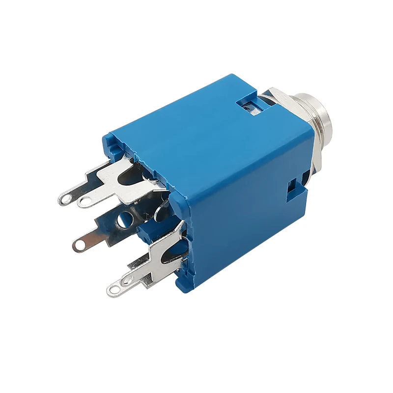 2 шт. PJ612A 6,35 мм аудио разъем для наушников Разъем 5Pin микрофон со штекера на гнездо адаптер для монтажа на панель с гайкой синий/черный