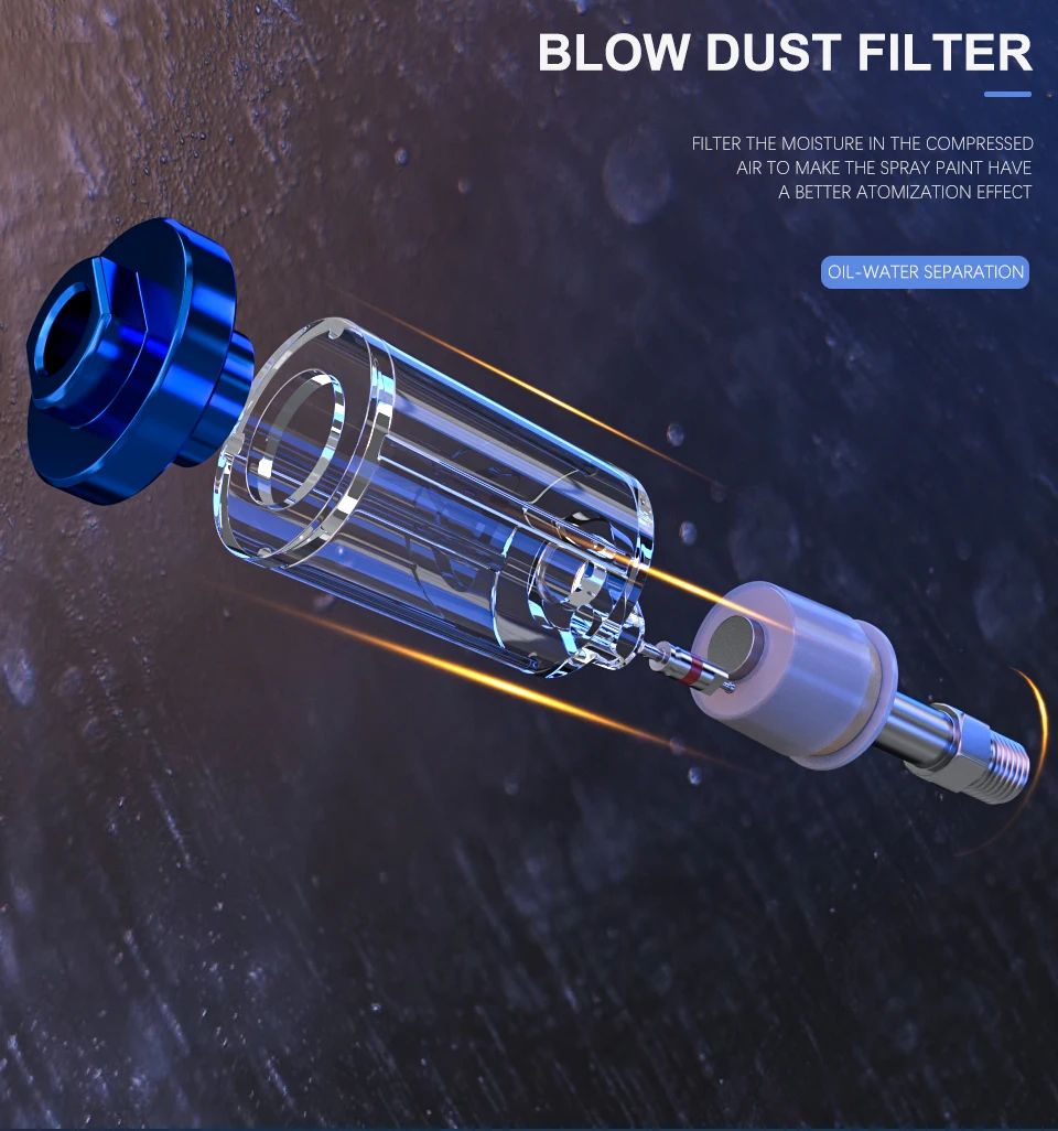 Он может быть непосредственно подключен к распылителю для фильтрации пыли и масла в воздухе.