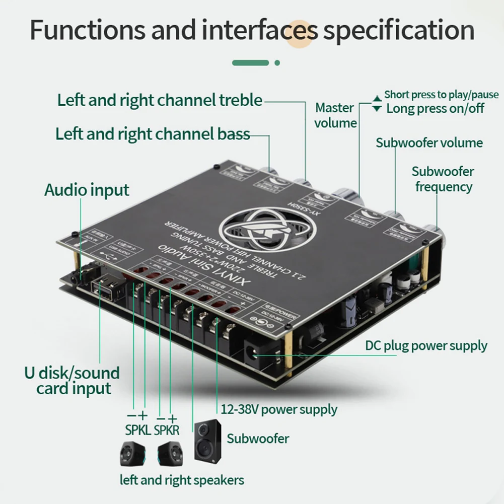 XY-S350H управление приложением 220Wx2 + 350 Вт усилитель плата TPA3251D2 2,1 двухканальный Bluetooth-совместимый 5,1 + AUX + USB звуковая карта + USB флэш-диск сабвуфер модуль аудио стерео беспроводной HiFi модулятор