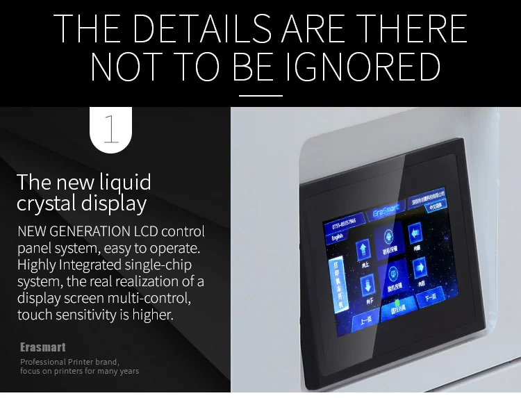 УФ-принтер с плоской панелью, также известный как универсальный принтер с плоской панелью или струйный УФ планшет, прорывается через узкое место технологии цифровой печати и достигает уровня взгляда с одной страницы без создания пластины и полноцветной печати изображений в одно время в истинном направлении. По сравнению с традиционной технологией печати, она имеет много преимуществ. EraSmart UV планшетный принтер использует стабильную технологию платформы и расширенный режим шагового двигателя. Он сочетает в себе инфракрасное, лазерное позиционирование, водяное охлаждение и воздушное охлаждение, чтобы удовлетворить долгосрочные требования к непрерывной работе. Он имеет широкий диапазон печати и может печатать продукцию в пределах 130 мм высоты. EraSmart UV струйный принтер может быть напечатан с почти неограниченным материалом. Например, мобильный телефон чехол, каменная Камея, акриловая доска, кошелек, индивидуальная стальная пленка, обои, керамическая плитка, u-диск, CD-ROM, стекло, ABS, ПВХ и т. Д.