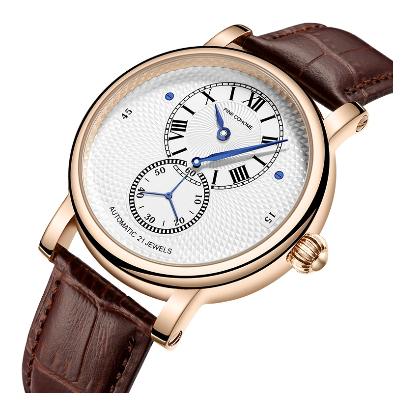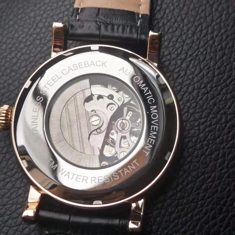 Швейцарские дизайнерские автоматические часы, работающие с 3 разделительными стрелками. Уникальный роскошный дизайн. И водонепроницаемый.