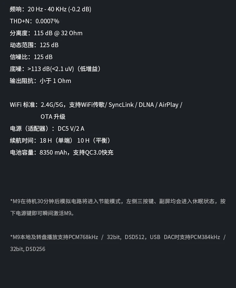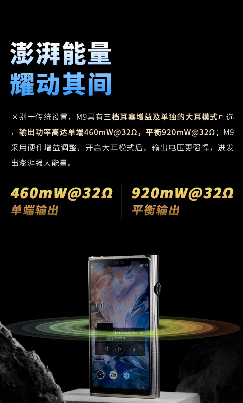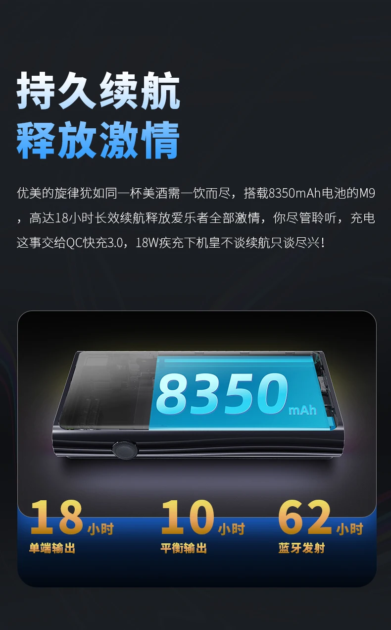 Используя сменный дизайн модулей наушников, M9 станет отличным сопряжением практически для любых наушников на рынке. Мы также оптимизировали схему усиления, чтобы обеспечить большую мощность как на сбалансированных, так и на одноконечных выходах, для использования с самыми требовательными полноразмерными наушниками. И в то же время, мы сумели увеличить срок службы батареи, до 18 часов воспроизведения на одном конце.