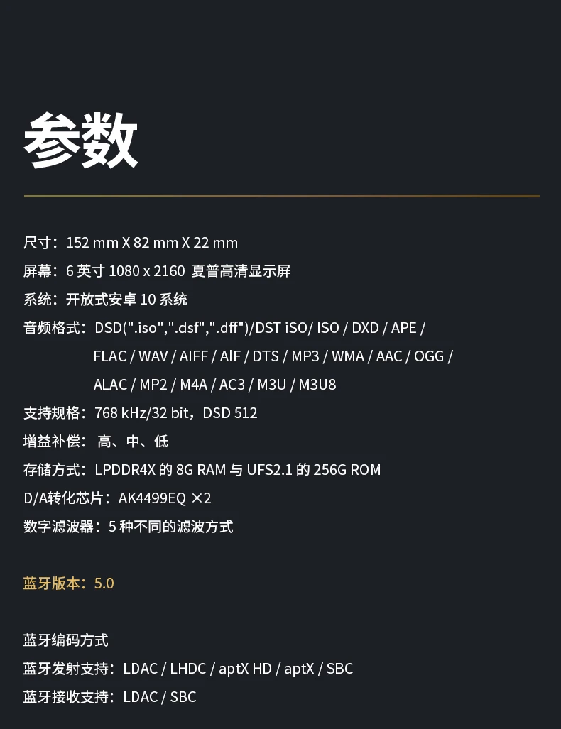 Shanling M9 Android 10 Портативный музыкальный плеер MP3 двойной AKM AK4499EQ ЦАП чипсов 6-дюймовый Экран Ram 8GB Встроенная память 256 ГБ Wi-Fi 2,4G/5G Поддержка Bluetooth 5,0 LDAC DLNA/обмена потоковыми мультимедийными данными (Airplay) PCM768 DSD512 MQA 16X