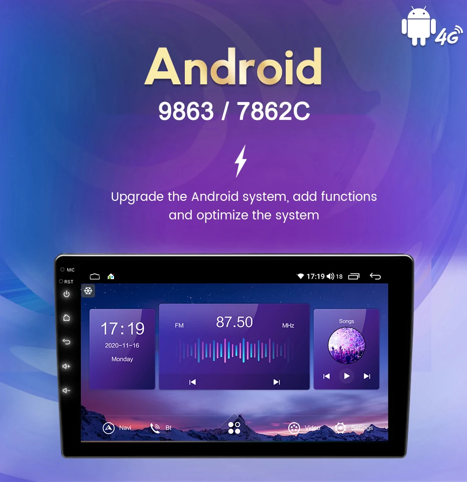 Функция NaviFly 7862C 8G + 128G > ОС Android + API 29 + 9 дюймовый IPS экран + разрешение 1280*720 + Восьмиядерный + DDR4 8 Гб флэш + 128 ГБ памяти + беспроводная Carplay + Android Auto + DSP + оптический выход + коаксиальный выход + Алюминиевый теплоотвод + Встроенный вентилятор + встроенный Wifi + 4G LTE + gps-навигация + управление рулевым колесом + Bluetooth BT5.0 + Встроенный микрофон + Поддержка USB ADAS DVR Функция + Европейская DAB функция + 2K видео играть > Язык экранного меню Русский, английский, испанский, итальянский, французский, немецкий, китайский, эстонский, польский, филиппинский, финский, корейский, голландский, хорватский, латышский, литовский, румынский, норвежский, португальский, японский, шведский, тайский, турецкий, украинский, венгерский. И так далее > Службы поддержки Наша цель-продолжать работать, чтобы сделать инновационное оборудование и программное обеспечение автомобильного мультимедийного Проигрывателя радио, чтобы дать вам этот персонализированный опыт.Мы предоставляем обновления для прошивки, программного обеспечения,