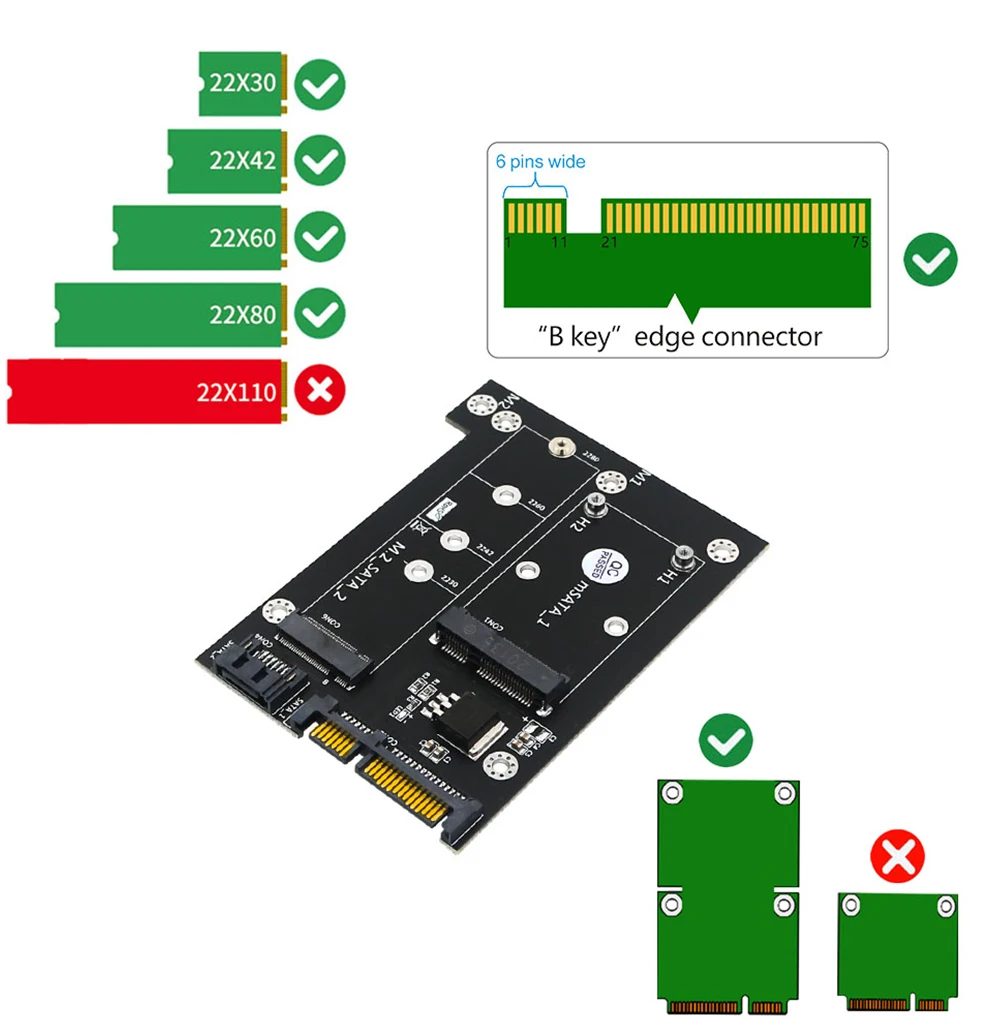 TISHRIC M2 на Sata SSD адаптер MSATA M.2 на двойной порт SATA III адаптер для жесткого диска M2 Sata адаптер конвертер карта
