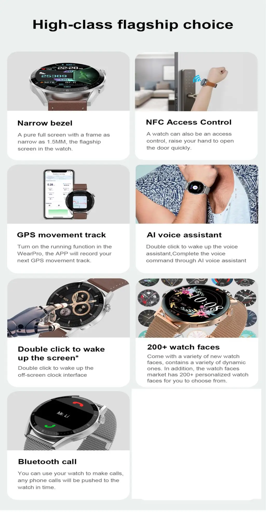 1. NFC этих часов поддерживает только как IC дверные карты с частотой 13,56mnz (применимо к 80% на рынке), не поддерживает другие функции.