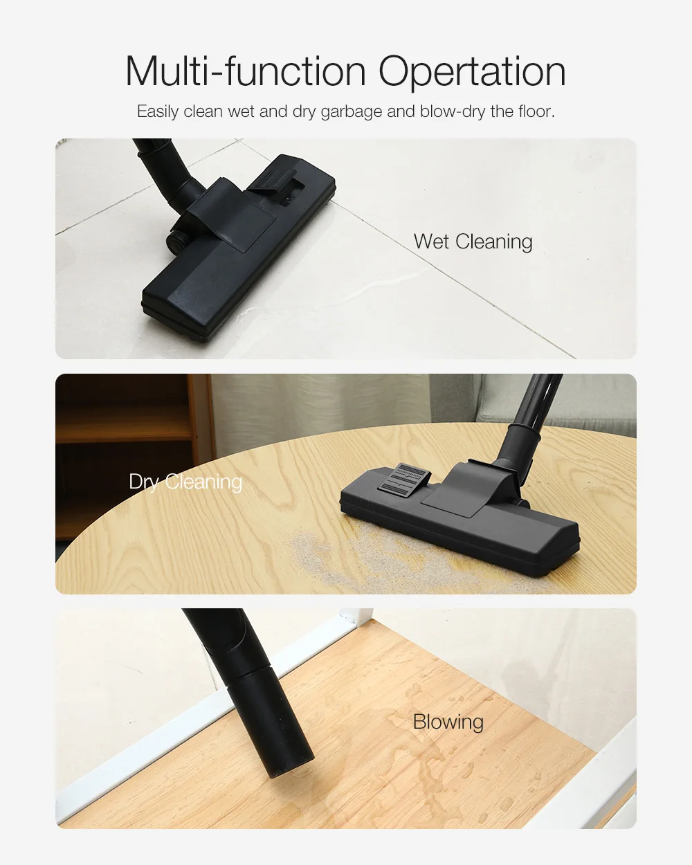 1. Сухой, влажный и дующий три функции: влажный и сухой пылесос не требует замены чистящих средств,