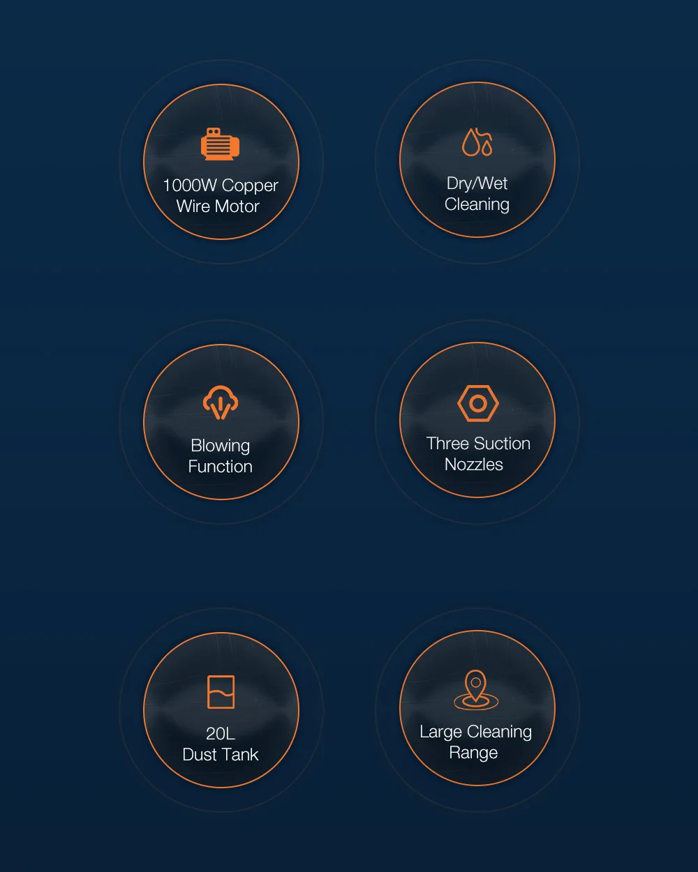 3. 1000 Вт медный провод Мотор: 1000 Вт Высокая мощность, обеспечивая сильное всасывание, сбор пыли быстрее, чище и более энергосберегающий, Чистый медный провод двигатель прочный и долговечный.