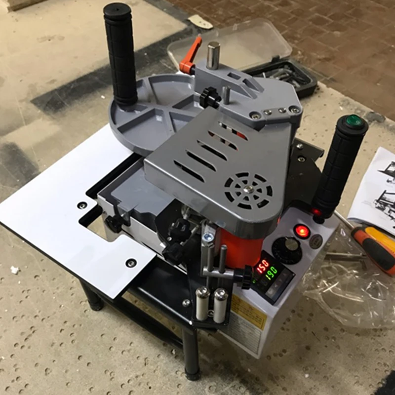 Кромкооблицовочная машина портативная деревянная ПВХ Двусторонняя склеивающая кромкооблицовочная машина с поддоном Регулируемая скорость 1200 Вт 1000 мл