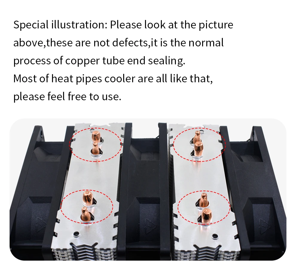 2:4/6 u-образные спеченные тепловые трубы из чистой меди, расположены симметрично на горизонтальных и вертикальных осях, эффективно уменьшают потери производительности, вызванные избыточным временем изгиба и углами