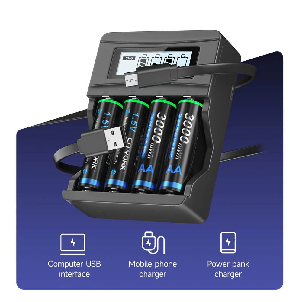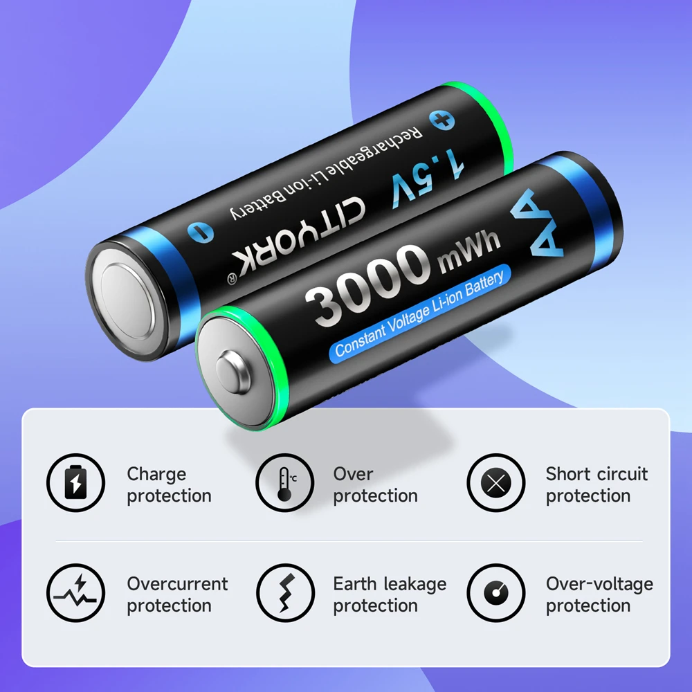Цитйорк 1,5 V AA литий-ионная аккумуляторная батарея 3000mWh 1,5 V AA литиевая аккумуляторная батарея для дистанционного управления игрушечная батарея