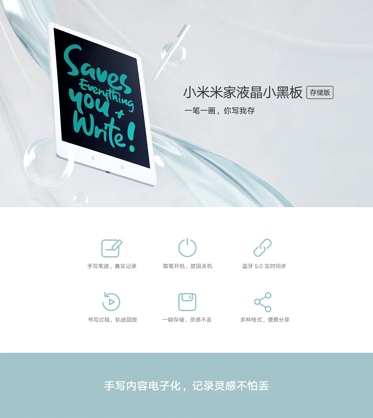 Xiaomi Mijia Bluetooth ЖК-планшет для хранения версия 13,5 дюйм перезаряжаемый напольный офиса письменные доска APP управление воспроизведение дорожки