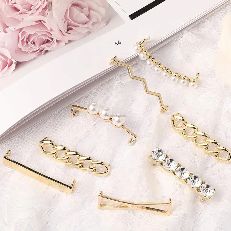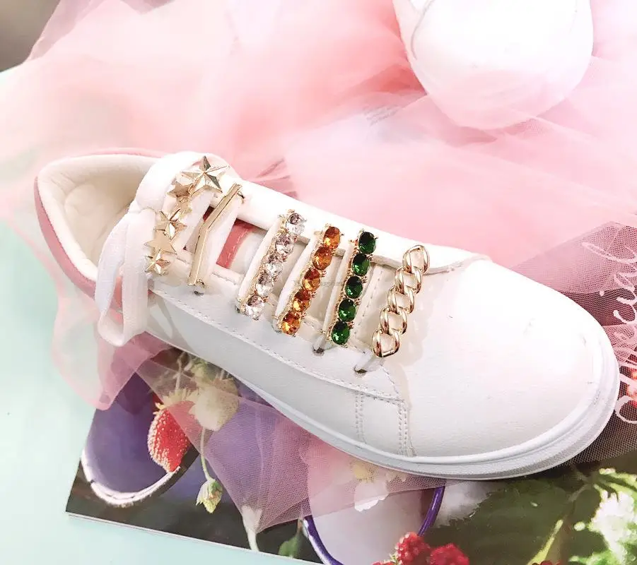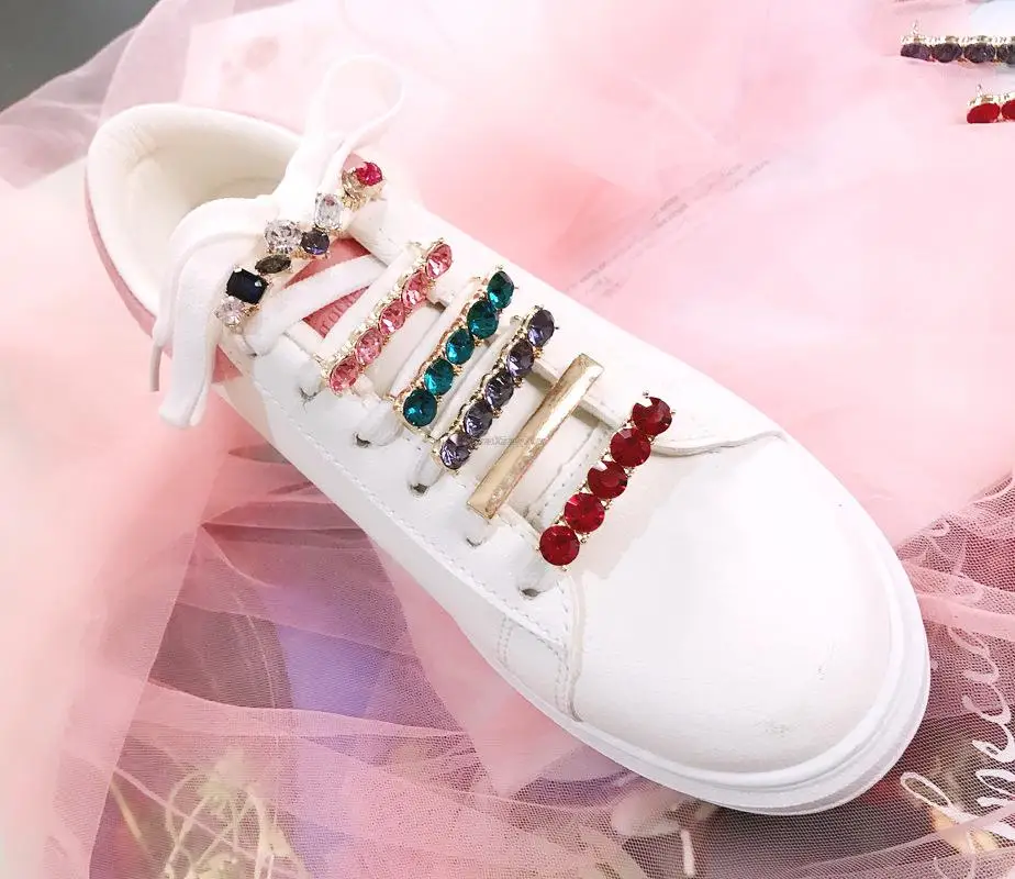 Кроссовки с шнурками, украшенные металлическими шнурками, с пряжкой, аксессуары для обуви DIY, женские блестящие стразы, шнурки для обуви, клипсы, 1 шт.