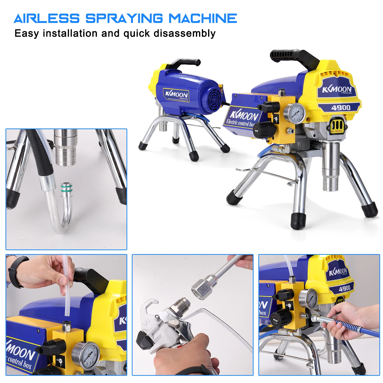 Это своего рода качественный плунжерный распылитель краски, принимает мотор щетки прямого тока, большой корпус насоса, с цифровой функцией регулировки давления. Он имеет преимущества тонкой распыления, бездымной работы и имеет гладкую и безпузырчатую распыляющую поверхность. Широко применяется, подходит для распыления всех видов без гранул и низкой вязкости красок, краски и латекса. Домашние и наружные противопожарные, сохранение тепла и коррозионно-стойкие материалы, опрыскивание сада. Вы можете попробовать.