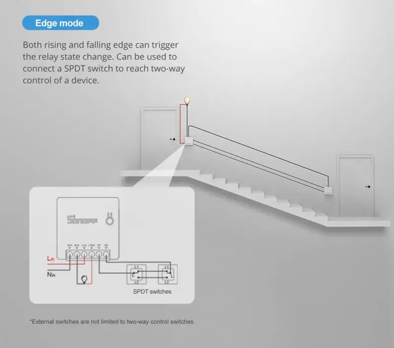 MINIR2, в качестве усиленного мини двустороннего DIY smart switch, был переработан, чтобы поднять безопасность и производительность до оптимального уровня. Старая версия MINI имеет внешнюю антенну с сильным электричеством, но антенна minir2 полностью скрыта в интерьере, что обеспечивает вам душевное спокойствие, чтобы использовать его для управления вашими устройствами. Кроме того, интерфейс S1 и S2 окрашен в серый цвет, который отличается от других интерфейсов ввода и вывода, чтобы в дальнейшем напоминать вам не подключать сильный ток к обоим интерфейсам. 2KV Испытание на перенапряжение соответствует стандарту 1KV, который требуется Сертификация CE, и он прошел сертификацию ANATEL, поэтому MINIR2 дает вам достаточно безопасности, чтобы обеспечить вам безопасное использование. Маленький и компактный смарт-переключатель используется для различных видов коробок переключения, даже самый маленький Стандартный Переключатель ЕС. Удобно автоматизировать бытовую технику в приложении eWeLink с помощью смартфона или голосовой команды. Поддержка 3 режимов запуска импульсного режима (работает с кнопочными переключателями), edge mode (работает с переключатели SPDT) И следующий режим (работает с переключателями с отметкой «ON» и «OFF» и датчиками с выходом сухого контакта). Он поддерживает режим «сделай сам» (предназначен для разработчиков), который позволяет пользователям интегрировать MINIR2 в третьи по всему миру вечерние системы управления с открытым исходным кодом для достижения контроля локальной сети без облачного сервиса, такие как домашний помощник, openHAB, ioBroker. И т. Д. Для документа протокола и кода для инструмента «сделай сам» (обновление) перейдите кHttp://developers.sonoff.tech/sonoff-diy-mode-api-protocol.html