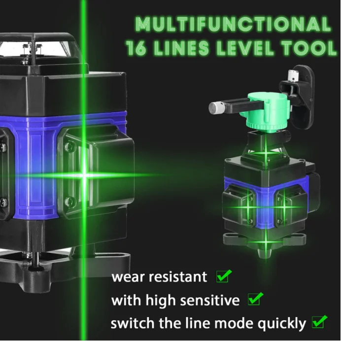Это своего рода инструмент высокого качества, 4D 16 линий для более точного позиционирования, с самонивелирующейся системой, гибкостью и стабильностью. С вертикальными и горизонтальными лазерными линиями, удобство в использовании. Идеально подходит для различных видов применения, включая напольное покрытие, плитку, обшивку, обшивку стен, обшивку, отделку столярных изделий, обшивку стен и установку перегородок. Вы можете попробовать.