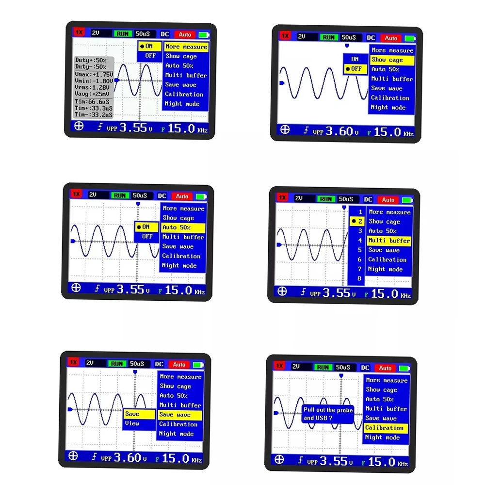 Осциллограф является полнофункциональным, высокоэффективным, высокопроизводительным и экономичным портативным осциллографом для отрасли технического обслуживания и НИОКР. Осциллограф имеет частоту дискретизации в реальном времени до 20 мс/с и аналоговую пропускную способность 5 МГц. С полной функцией запуска (одиночный, нормальный, автоматический), можно свободно использовать как аналоговый сигнал, так и аперитив цифрового сигнала. Режим сканирования с большой базой времени может контролировать медленные изменения уровня. Оснащен высокой эффективностью одной кнопкой авто, измеренная форма сигнала может отображаться без сложной регулировки. Дисплей в Высокое разрешение ЖК-дисплей экран оснащен 2,4 дюймов 320*240 разрешение. Чрезвычайно удобная и быстрая функция хранения сигналов, встроенная память объемом 16 Мб, Максимальная память 500 изображений формы волны. Мощный файловый менеджер waveform, поддержка просмотра эскизов, просмотра, просмотра деталей, переворачивания, удаления и других функций. Встроенный перезаряжаемый литиевый аккумулятор емкостью 1500 мАч может непрерывно заряжаться в течение 3 часов одновременно. Дневной режим и ночной режим могут быть изменены в соответствии с вашими предпочтениями.