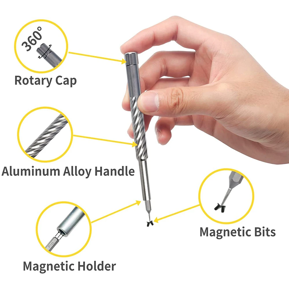 3. Эргономичная ручка из алюминиевого сплава, встроенный Магнит на головке ручки, он будет активно поглощать биты привода, супер гладкая поворотная крышка позволяет применять постоянное давление при вращении. И различные Аксессуары в комплекте делают вашу ремонтную работу проще и эффективнее.