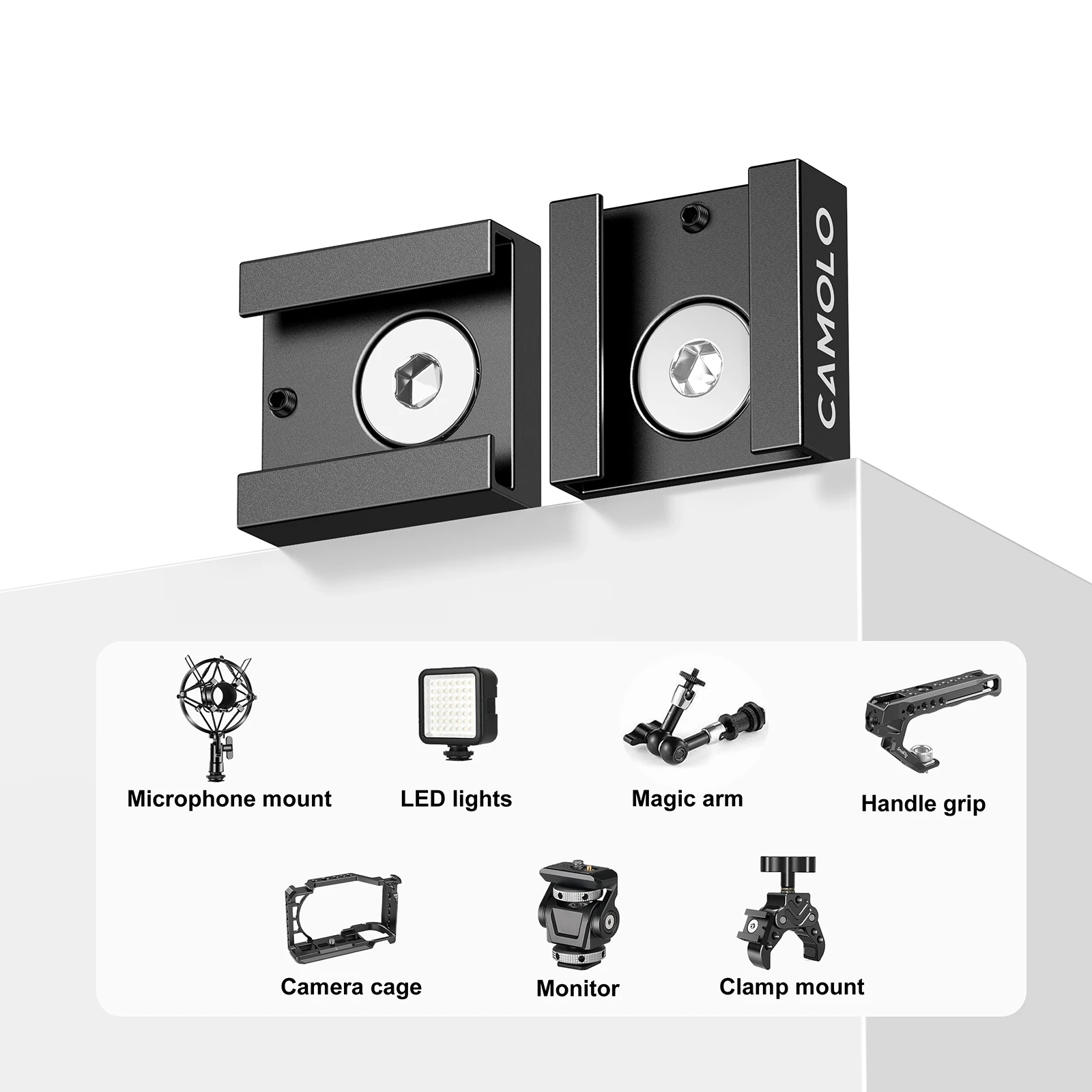 Widely compatible: The cold shoe mount adapter has 1/4 inch threaded holes that allow you to connect microphones, flashes, LEDs, handles, rabbit cages, monitors and other devices with 1/4 inch threaded holes.