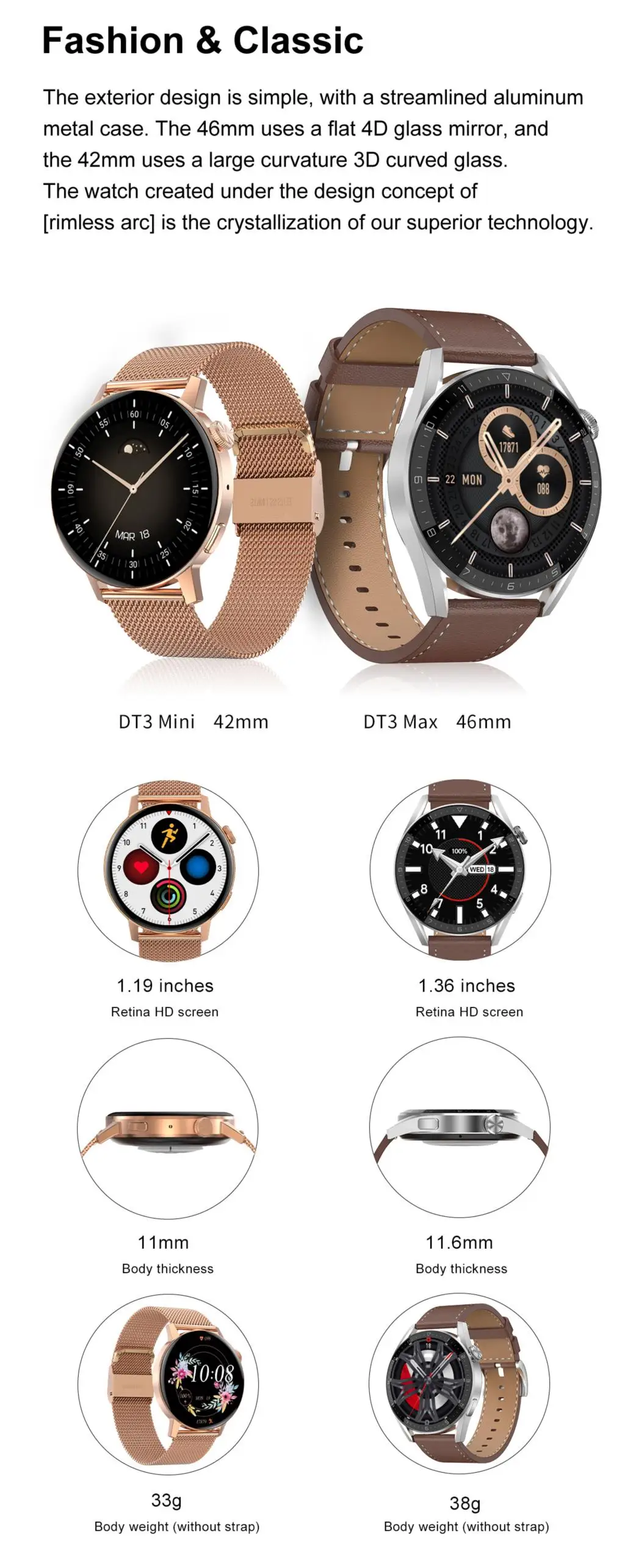 100% Оригинальные мини Смарт-часы DT3 для Мужчин 41 мм с беспроводным зарядным устройством NFC 200 + часы с gps-трекером, Bluetooth, вызовом для женщин, умные часы