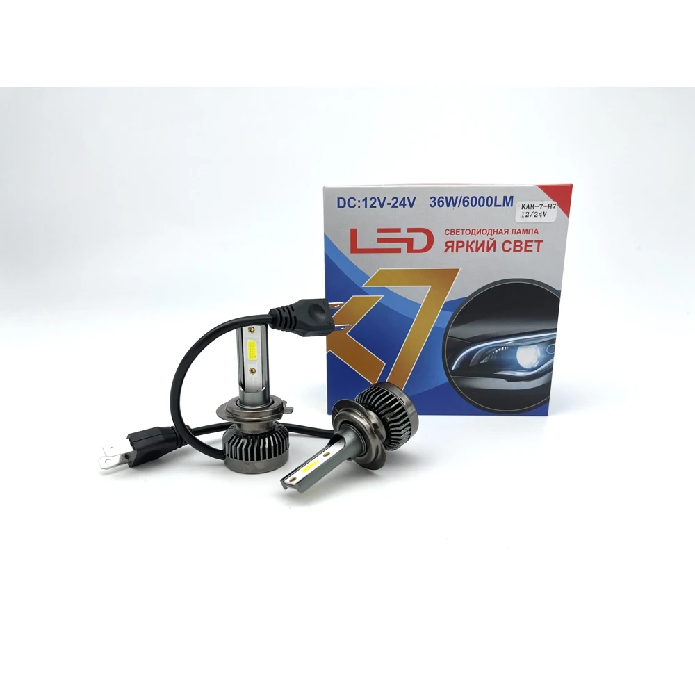 Лампа H7 K7 диодная 2шт 36W, 6000LM, 6000K радиатор охлаждения 12v-24v. Комплект 2 шт радиатор-данная светодиодная автолампа,позволяет водителям значительно улучшить видимость на дороге и увеличить площадь освещаемого участка. Излучает широкий поток света, который просвечивает туман и при этом освещает непосредственно дорожное полотно. Мощный светодиод. Эффективная система охлаждения. Возможность установки, без изменения и доработки конструкции фары.
