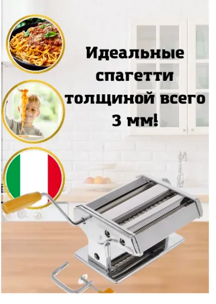 Принцип работы лапшерезки очень прост: вращая рукоятку, Вы запускаете валики, которые позволяют раскатать идеально тонкое тесто. C помощью ручки раскатанное тесто также можно разрезать на узкие или широкие полоски.Лапшерезка имеет 9 режимов толщины раскатки теста и позволяет нарезать 2 вида лапши