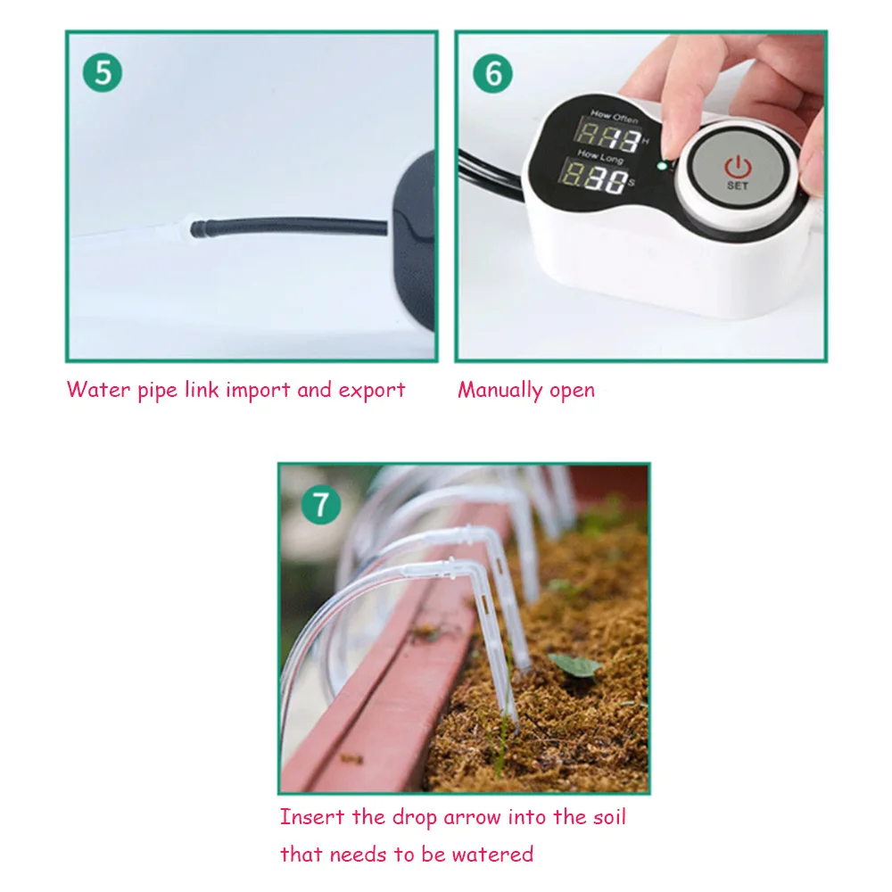 * Автоматический режим полива, время и количественный, интервальный цикл времени может быть установлен 1-999 часов, одиночный полив может быть установлен 1-999 секунд один раз, вращающаяся кнопка, легко установить программу
