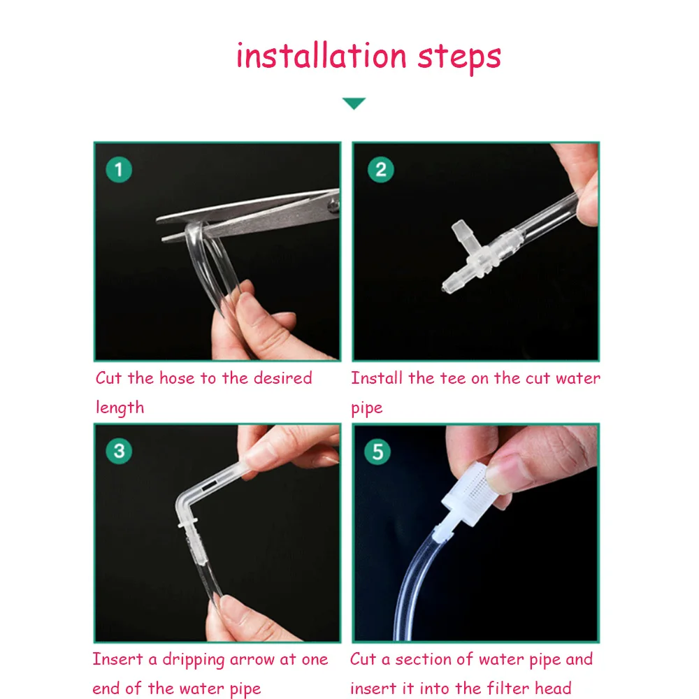 Шаги по установке: 1. Отрежьте водопровод до требуемой длины 2. Установите тройник на резанную водопроводную трубу 3. Вставьте стрелку в один конец водопровода 4. Перехлестните Раздел водопровода и вставьте его в фильтр 5. Соединение водопроводной трубы на входе и выходе 6. Вручную Откройте переключатель 7. Вставьте стрелку падения в почву, которая должна быть Полированный
