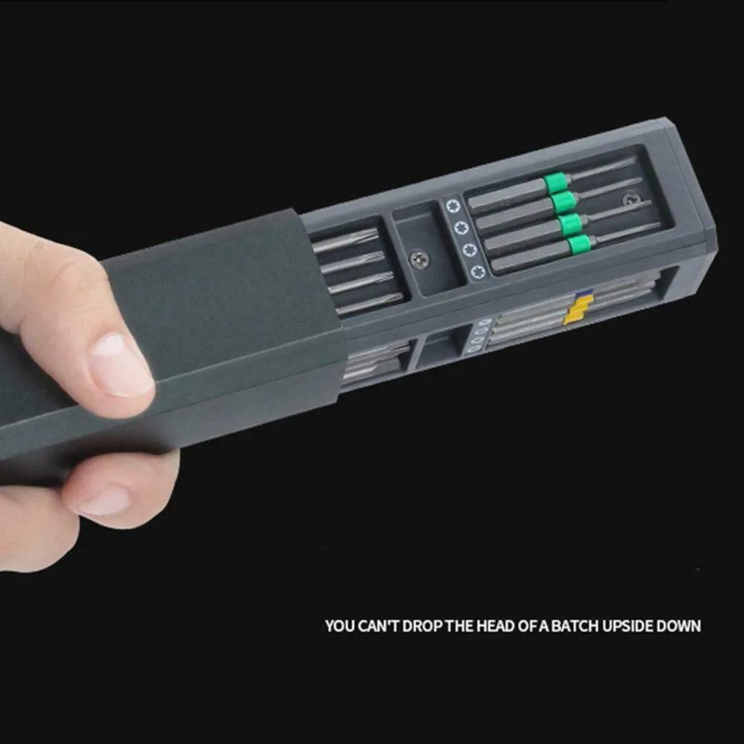Встроенная кнопка извлечения, всплывающий контейнер с одним щелчком, удерживает все винты на месте, чтобы они не падали. Намагниченные наконечники улучшают обработку винтов и манипулирование.