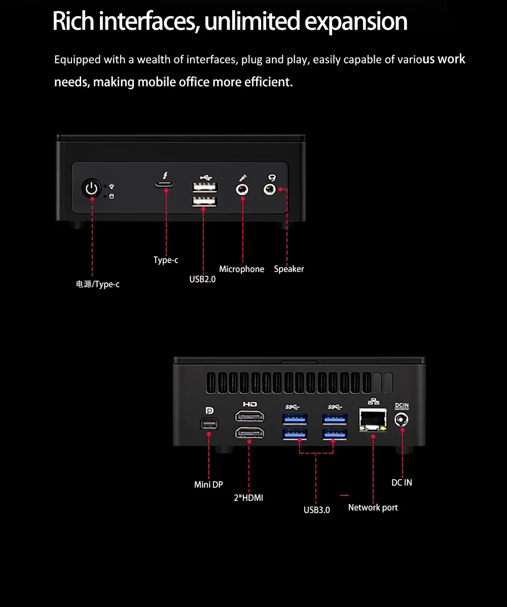 -Полнофункциональный Type-C, поддержка функции Intel Thunderbolt 4.-Встроенный мощный медный вентилятор для рассеивания тепла, обеспечивает стабильную работу компьютера 7x24 часов.-Поддержка TPM2.0, PXE, RTC, Wake on LAN, автоматическое включение и т. д.-Ультра компактный размер 133*124*48 мм.Процессоры
