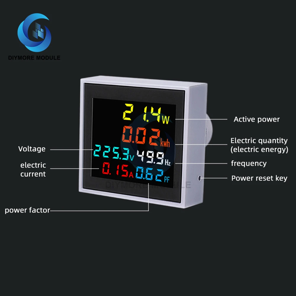 Цифровой многофункциональный измеритель может одновременно измерять и отображать 6 параметров, таких как напряжение переменного тока, ток переменного тока, активная мощность, коэффициент мощности, частоту и электрическую энергию. Часть дисплея прибора имеет цветной жидкокристаллический дисплей высокой четкости.
