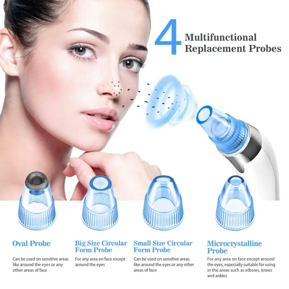 Пылесос обладает способностью всасывать и очищать кожу более мощно. 1000 тестов были сделаны, показывая, что этот средство для удаления черных точек может эффективно удалять черные, белые головы, омертвевшую кожу, жир и остатки макияжа, может затянуть кожу через 2 - 5 недель непрерывного использования. Качество гарантировано.