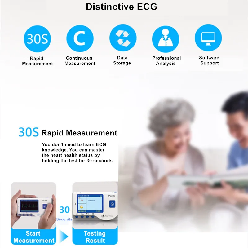 Применение: он подходит для домашних пользователей для самостоятельного мониторинга и записи формы волны ЭКГ и частоты сердечных сокращений