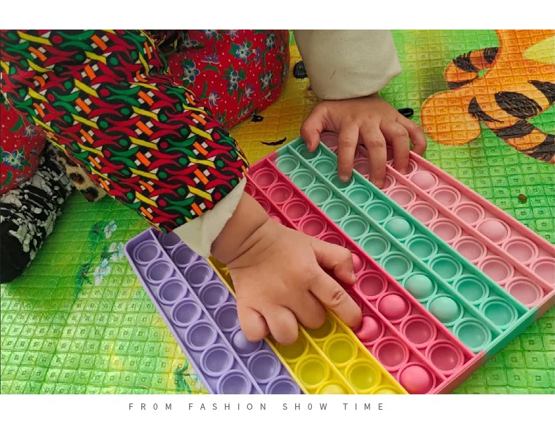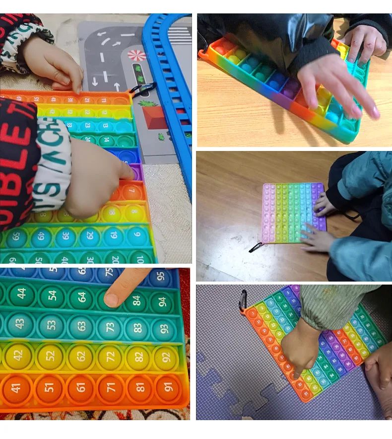 Развивающая игрушка с пушающими пузырьками-это настольная игра, которая может осуществлять математическое мышление детей, логическое мышление, логическое мышление и мелкую моторику. Можно играть с различными правилами. Игрок нажимает любое количество пузырьков в одном ряду, кто нажимает последние пузырьки, которые теряют игру.
