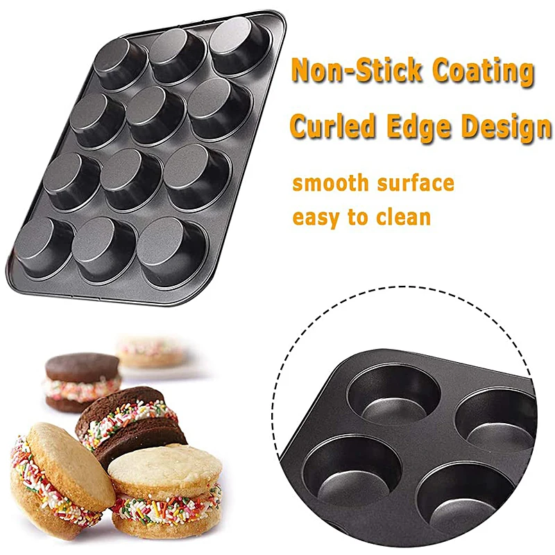 Легко чистить: противень для выпечки с антипригарным покрытием легко моется, кексы или Кексы не прилипают к нижней части жестяной банки, мыть горячей водой, нежный скраб или губка, избегайте использования металлической утвари.