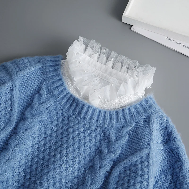 Модная кружевная шифоновая кукла, хлопковая рубашка с фальшивым воротником, Женская Съемная рубашка, воротник, ложный воротник, женский топ с отворотом, воротник, Декор, половина рубашки