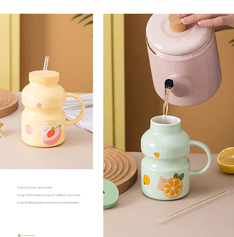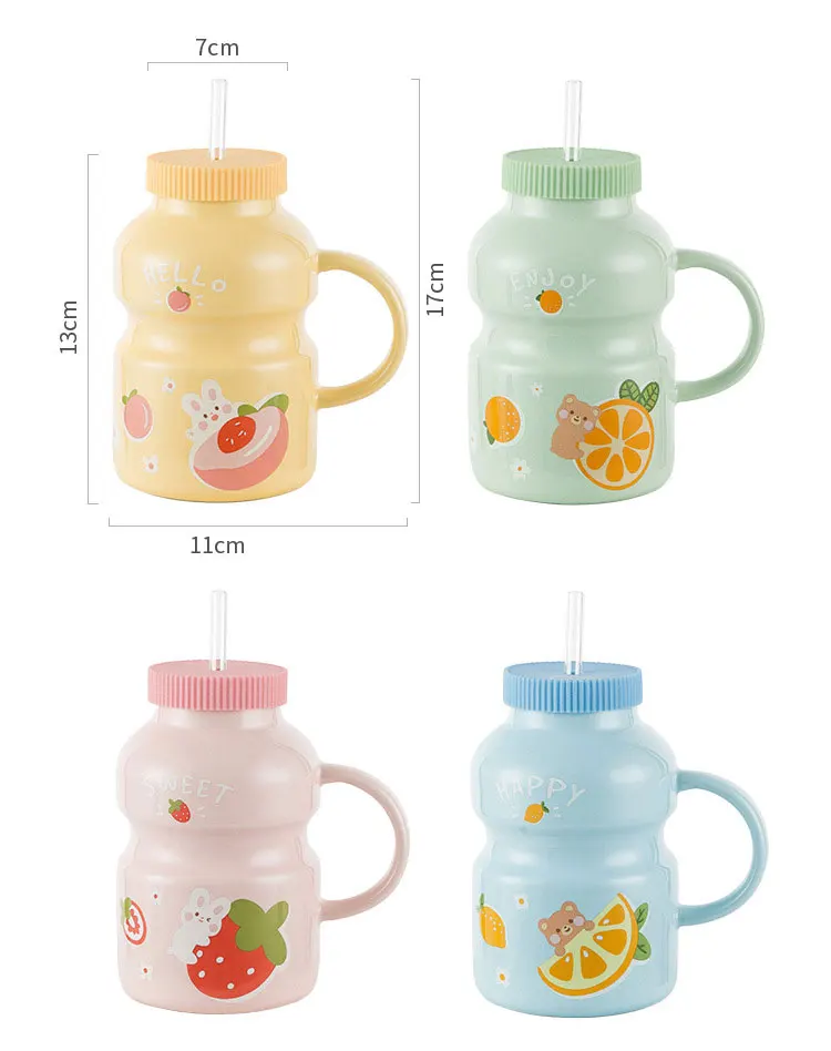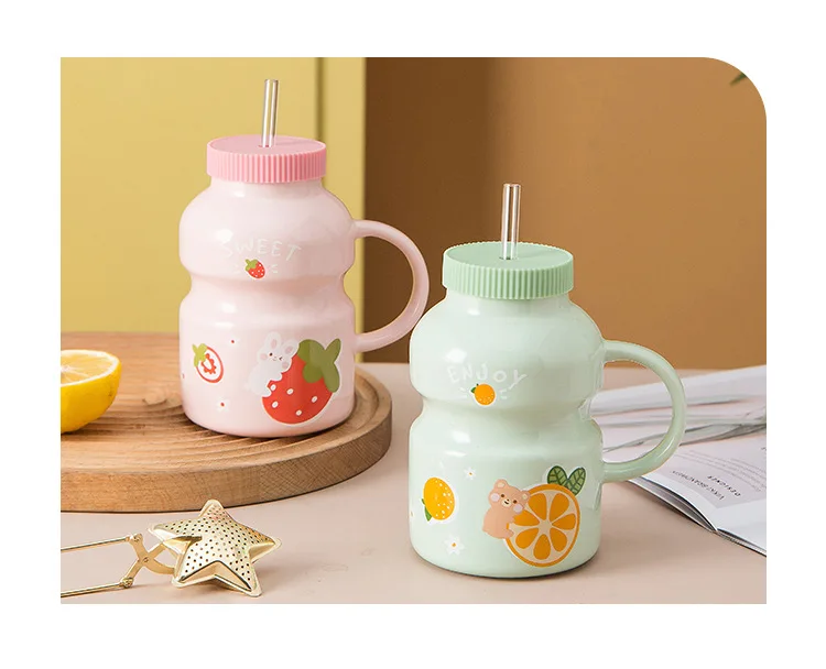 Креативная Милая фруктовая кружка с крышкой и соломой