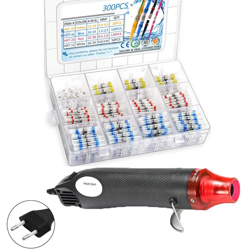 Цвета и размеры:Красный разъем:Костюм кабель/размер провода 22-16 AWG 0,5-1,5 м 23 23 штСиний разъем:Костюм кабель/размер провода 16-12 AWG 1,5-2,5 м 12 12 штЖелтый разъем:Костюм кабель/размер провода 12-10 AWG 4,0 m ㎡ 10 штБелый разъем:Костюм кабель/провода Размеры 26-24 AWG 0,25-0,34 м ㎡ 5 шт. ---------------------- 100 шт. ------------------------------------ Цвета & Размеры:Красный разъем:Костюм кабель/размер провода 22-16 AWG 0,5-1,5 м 35 35 штСиний разъем:Костюм кабель/размер провода 16-12 AWG 1,5-2,5 m 30 30 штЖелтый разъем:Костюм кабель/размер провода 12-10 AWG 4,0 m ㎡ 10 штБелый разъем:Костюм кабель/провода Размеры 26-24 AWG 0,25-0,34 м ㎡ 25 шт. ---------------------- 300 шт. ------------------------------------ Цвета & Размеры:Красный разъем:Костюм кабель/размер провода 22-16 AWG 0,5-1,5 м 100 100 штСиний разъем:Костюм кабель/размер провода 16-12 AWG 1,5-2,5 m 100 100 штЖелтый разъем:Костюм кабель/размер провода 12-10 AWG 4,0 m 30 30 штБелый разъем:Кабель для костюма/размер провода 26-24 AWG 0,25-0,34 м 70 70 шт. -------------------------------------------- 1 шт. пистолет для горячего воздуха Материал: пластик и металл вилка: вилка США/ЕС Цвет: черный Размер: прибл. 225*47*20 мм Входное напряжение: 220 В мощность: 300 Вт температура: до 200 ℃ Диапазон рабочих температур Рабочая температура: -55 ℃ ~ 125 ℃ минимальная температура усадки: 60 ℃ начальная температура припоя расплава: 138 ℃ температура полного припоя melt160 ℃ Цвет: красный, синий, белый, желтый, черный посылка в комплекте: Термоусадочные Провода 50/100/300