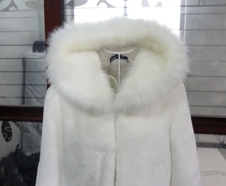 Новинка 1 роскошное пальто с искусственным кроличьим мехом Женское зимнее пальто с капюшоном и воротником из лисьего меха средней длины Женское пальто элегантное женское пальто DC826 <