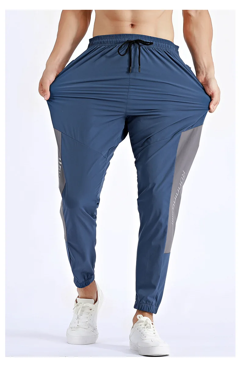 Мужские летние тонкие быстросохнущие спортивные штаны для тренажерного зала, фитнеса, бега, спортивные дышащие длинные штаны для бега, тренировочные брюки