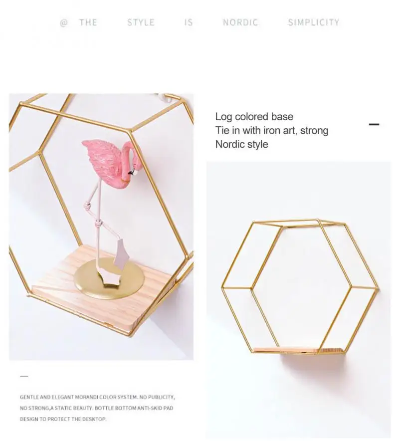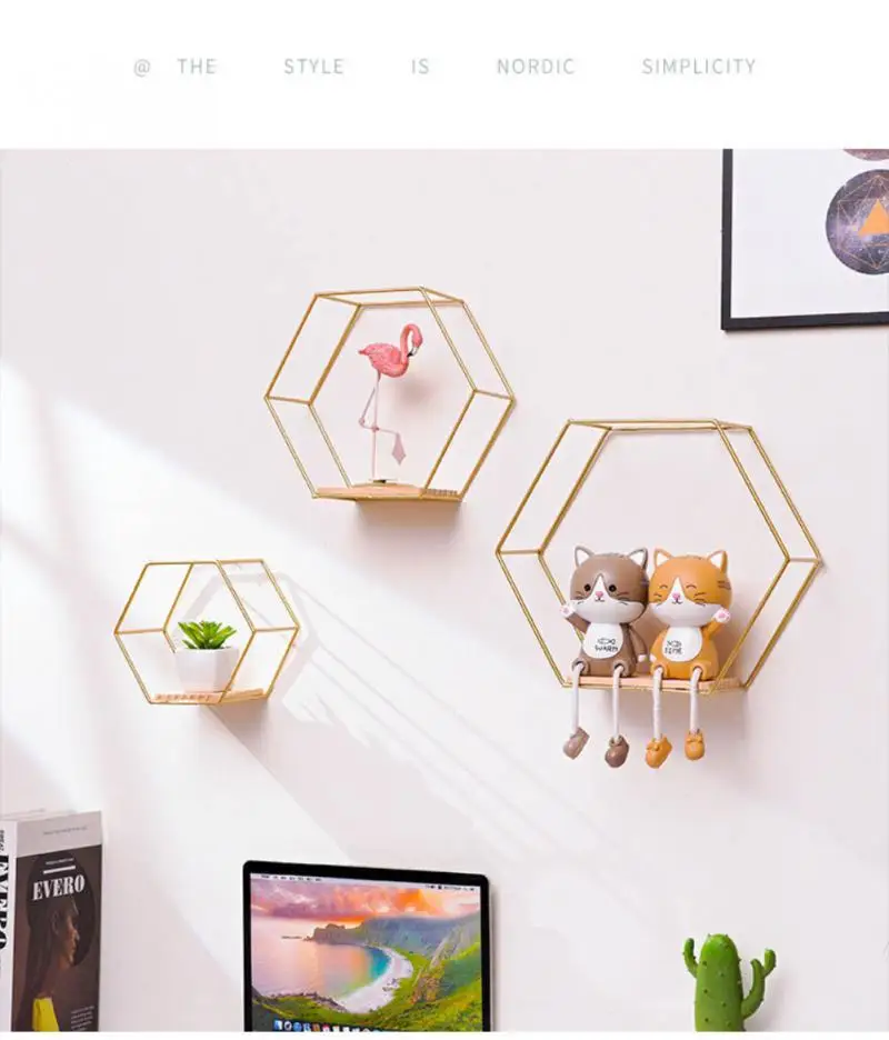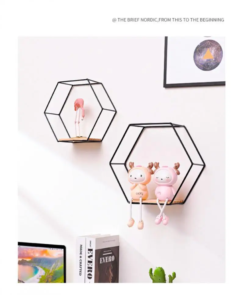 Шестигранная железная полка для хранения, декоративные полки, ремесло, скандинавский стиль, домашний настенный держатель для хранения, декоративные полки