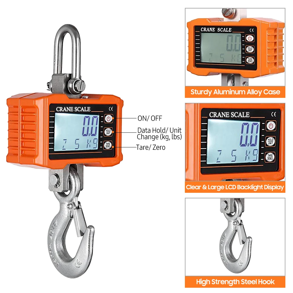 Цифровые подвесные весы 1000 кг/2204lbs портативные сверхмощные крановые весы с ЖК-подсветкой промышленные крюковые весы изменение единицы/хранение данных/тара/Ноль для строительной площадки путешествия рынок рыбалки уличная работа
