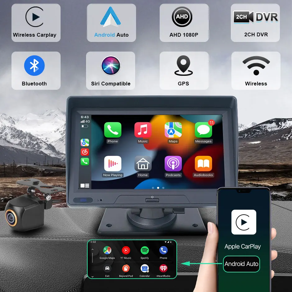 * Поддержка s Wireless CarPlay и Android Auto, поддержка воспроизведения музыки по bluetooth, поддержка fm-передачи, подключение к автомобильному радио.