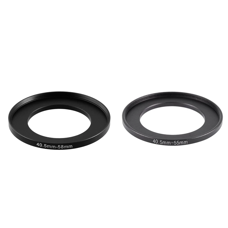 2 шт. повышающее переходное кольцо: 1 шт. 40,5 мм-58 мм и 1 шт. 40,5 мм-55 мм, Размеры (приблизительно) : 60x6 мм/2,36 дюймов x 0,24 дюймов (макс. D * H) & 57x6 мм/2,24 дюйма x 0,24 дюйма (макс.. D * H), резьба аксессуаров и Болванка 40,5-55 мм Шаг-вверх кольцо адаптера легко винты на передней части любого объектива 40,5 мм, И позволяет конвертировать в 55 мм нити аксессуаров
