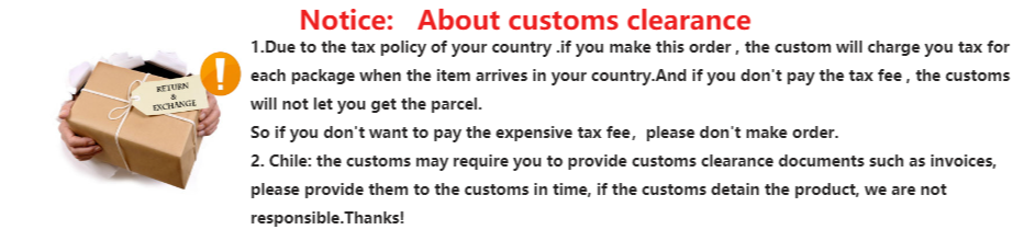 1) Клиенты должны связаться с местными таможенными органами илиМожет ли этот продукт быть импортирован и использован или нет.Мы не несем ответственности за любую таможенную конфисковку или штраф в соответствии с законодательством страны назначения.