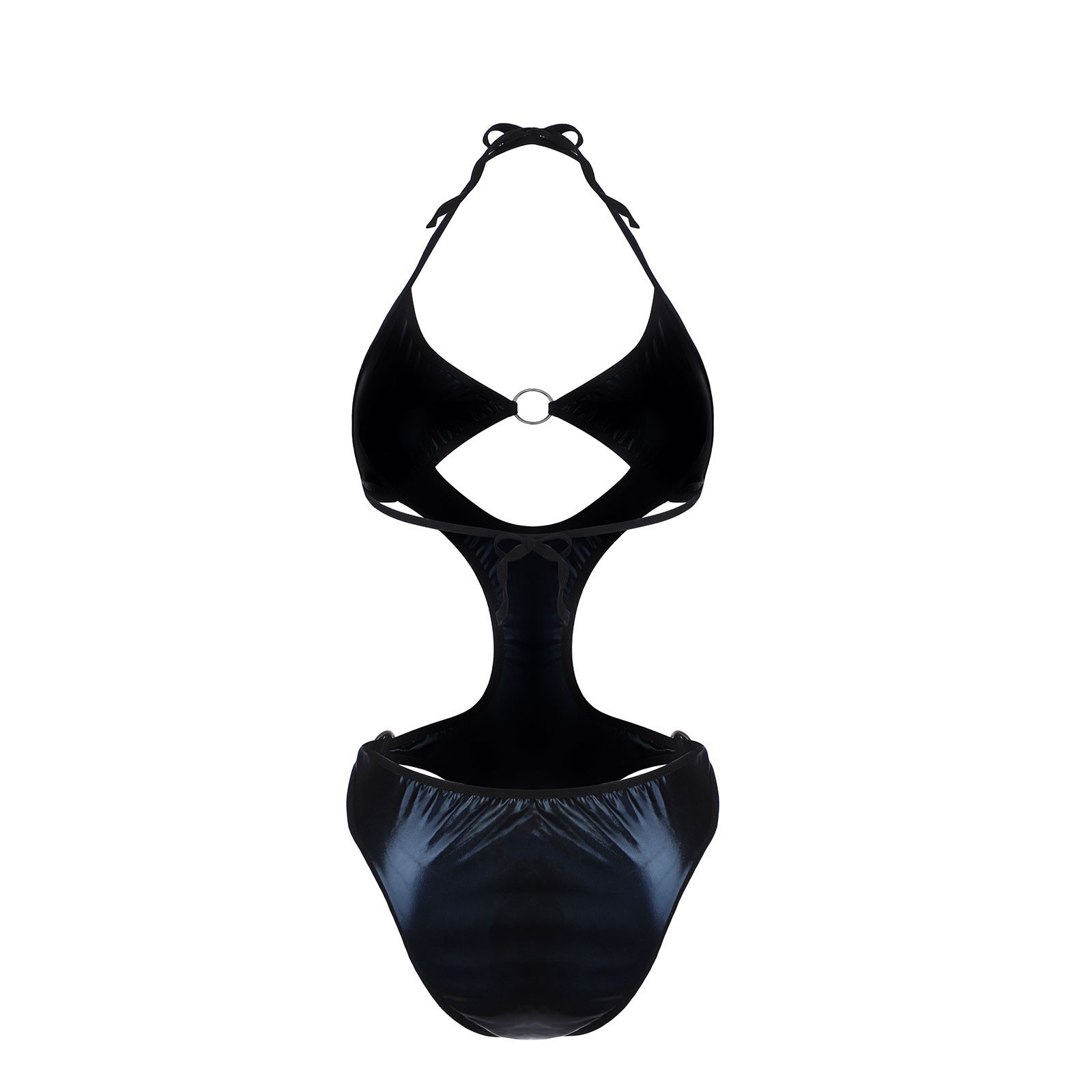 Sexy Strappy One-piece Temptation Halter Backless Patent Leather One-piece Suit