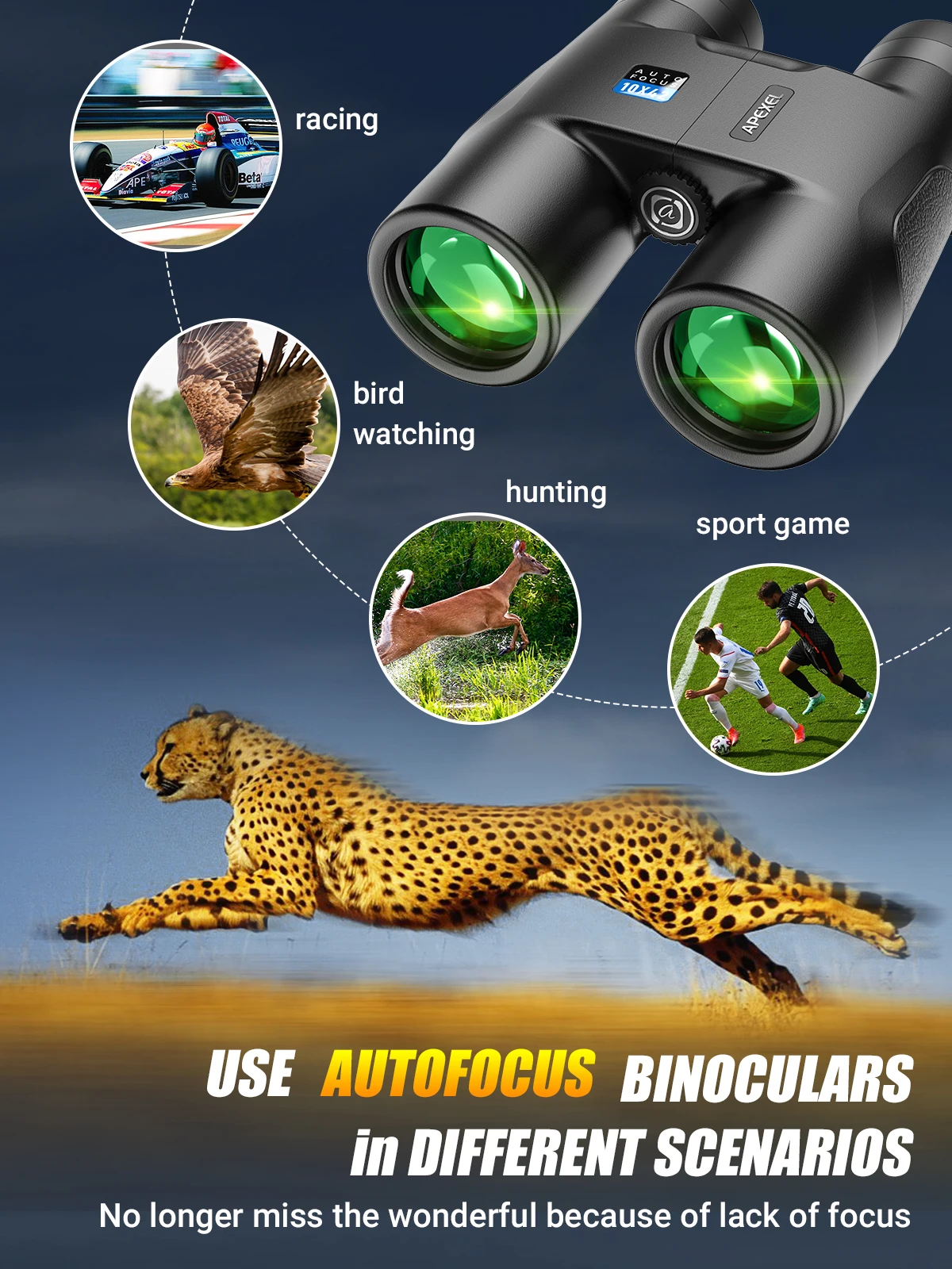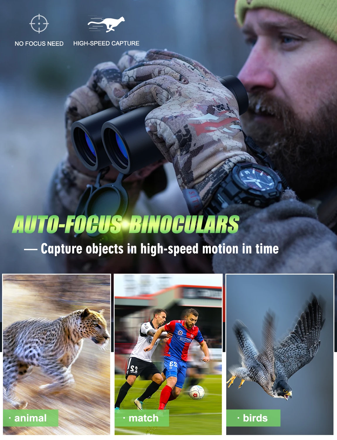 * Большинство биноклей должны регулировать Фокус при использовании, здесь также огромный спрос для людей, которым нужен быстрый фокус или фиксированный фокус для спортивной игры, катания на лыжах, гонок, быстрых движущихся целей...