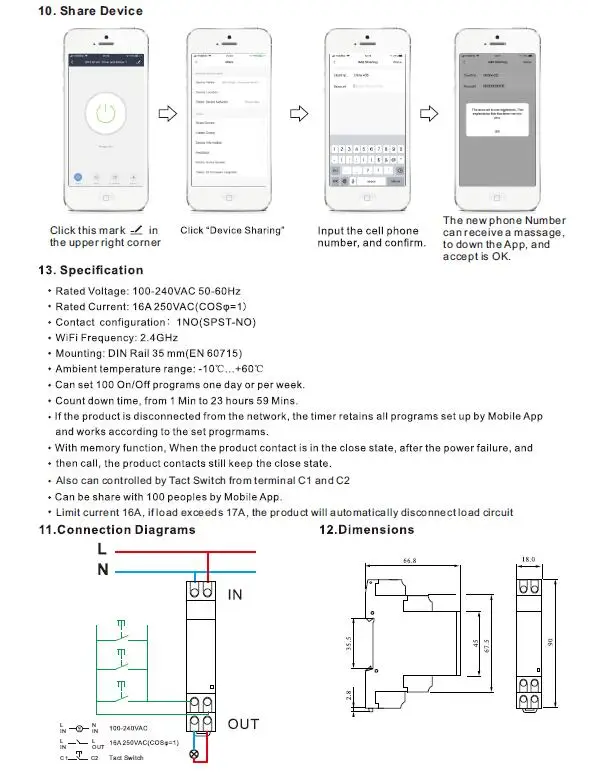 Предельный ток 16А, если нагрузка превышает 17А, продукт автоматически отключит цепь нагрузки